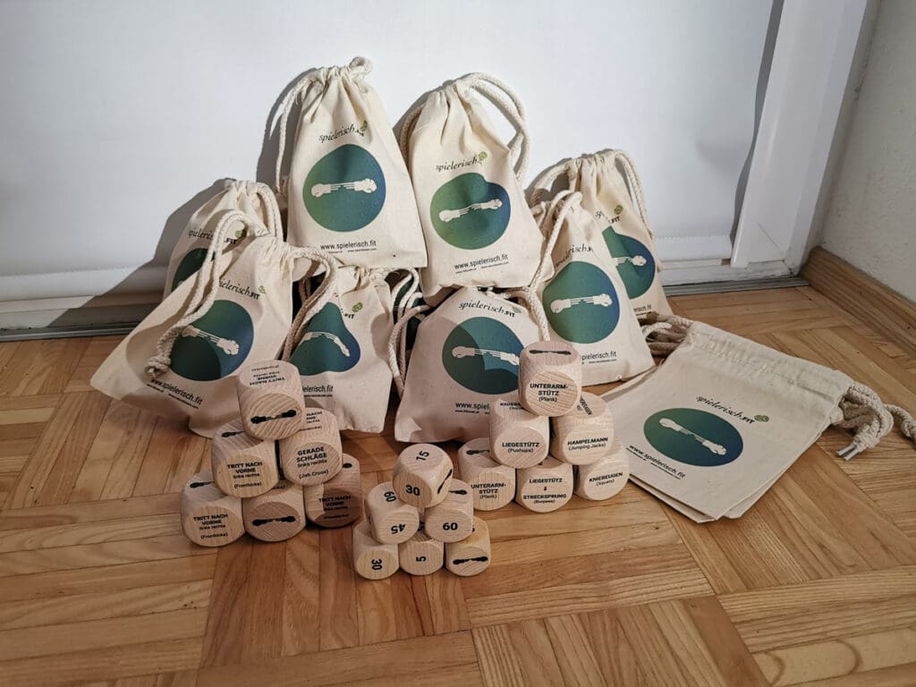 Für ein Jugendgesundheitsprojekt im Rahmen einer Projektförderung durch XUND und DU entstehen die ersten Holzwürfelsets mit Übungen, die kostenlos an Schulen, Vereine und Trainer:innen verteilt werden.