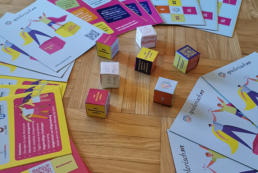 Durch die Initiative "die Bewegungsrevolution" und einer Förderung als Mitmachprojekt wird spielerisch.fit in der neuen Würfel-Variante von Tom konzipiert und entwickelt. Die Animation des Spiels wurde ausgelagert und der Design-Feinschliff kam von ARGE Werbung.